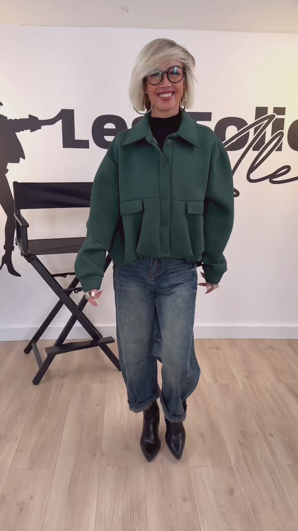 La veste NEO est la pièce cocon et tendance de la saison. Confectionnée dans une matière effet néoprène, elle offre à la fois chaleur et un joli volume structuré. Sa coupe asymétrique plus longue à l’arrière, lui apporte une touche d’originalité et de modernité. On adore ses deux poches cargo à rabat sur le devant, alliées à des bouton-pression pratiques pour un style urbain fonctionnel. Disponible en vert ou marron, les must-have couleurs de la saison.