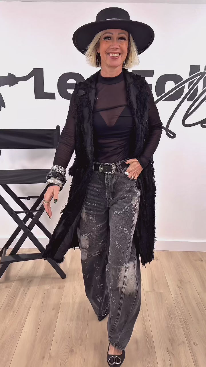 Le gilet MARCELLA fabrication de la marque Italienne WENDY TRENDY est une véritable pièce forte au charme sombre et sophistiqué. Long et sans manches, il apporte immédiatement une allure élégante et structurée à n’importe quelle tenue. Son col raffiné et sa fermeture par un seul bouton lui donnent ce côté minimaliste et couture qu’on adore.