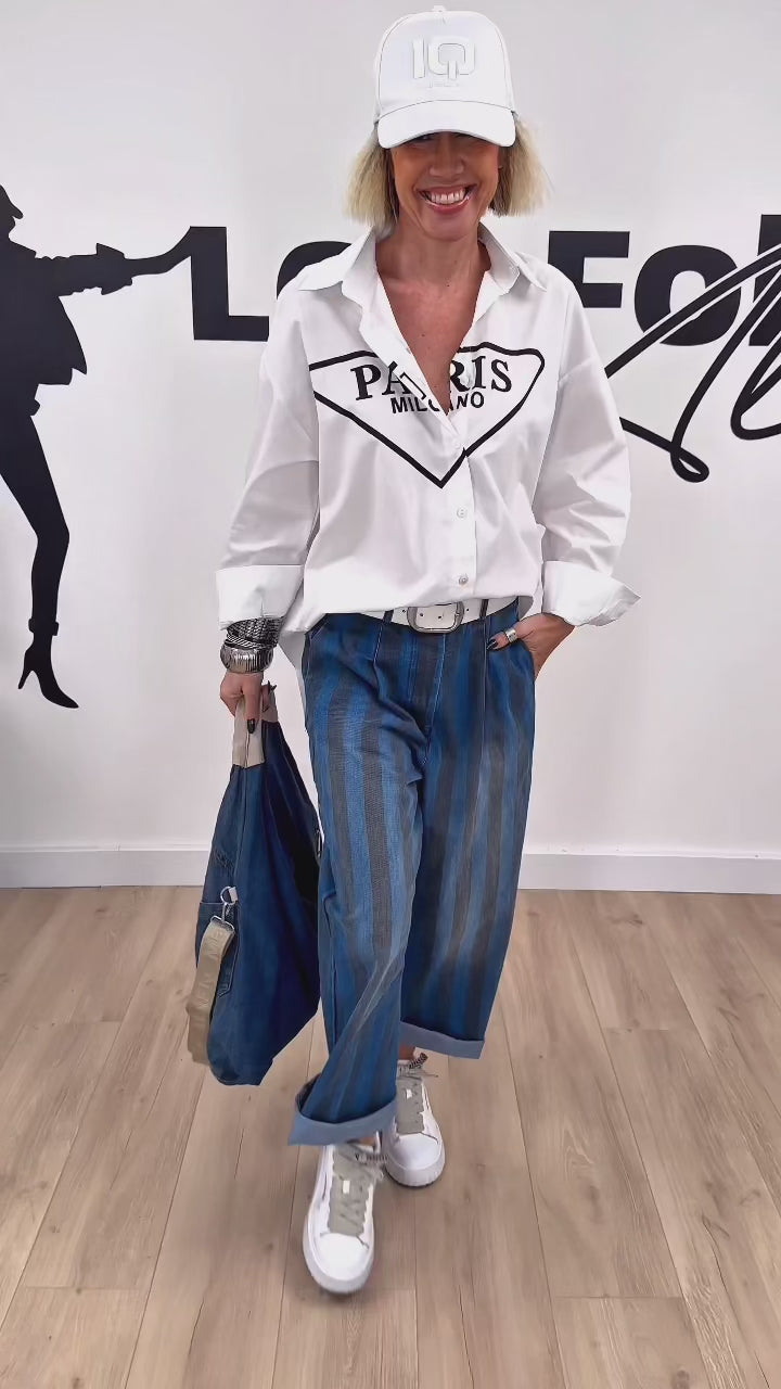 Le jean STRIP, c’est la pièce parfaite pour celles qui aiment les looks modernes avec une vraie identité. Avec ses larges rayures marron délavées (presque noires) sur fond bleu, il apporte immédiatement une touche graphique et sophistiquée à ta tenue. Sa matière légère et fluide le rend ultra agréable à porter, idéal pour la mi-saison et les journées où tu veux être stylée sans compromis.