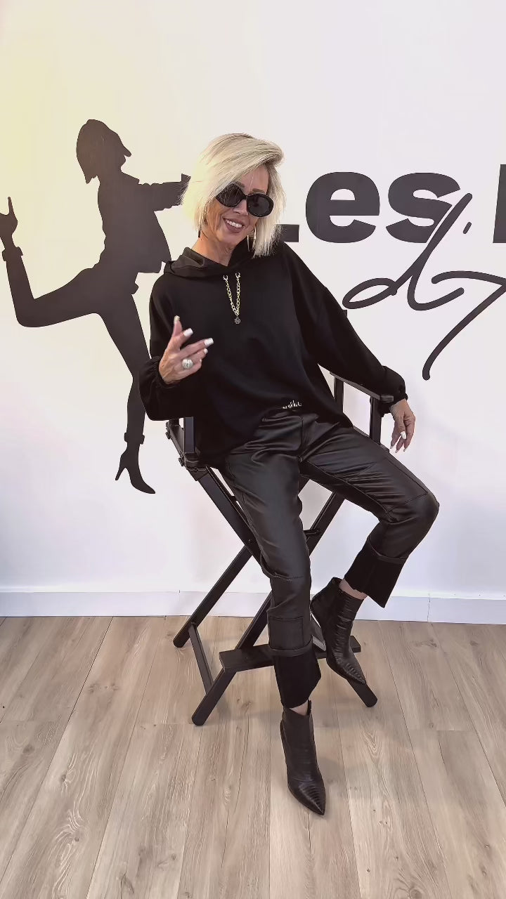 Affichez un style affirmé avec ce pantalon en simili cuir fin, à la fois fashion et original grâce à ses patchs ton sur ton dans la même matière. Sa coupe stretch offre confort et liberté de mouvement. Un indispensable de la garde-robe. Polyvalent, il peut se porter avec revers pour un look décontracté, ou sans revers pour une allure plus classique et élancée. Marque SEXY WOMAN.
