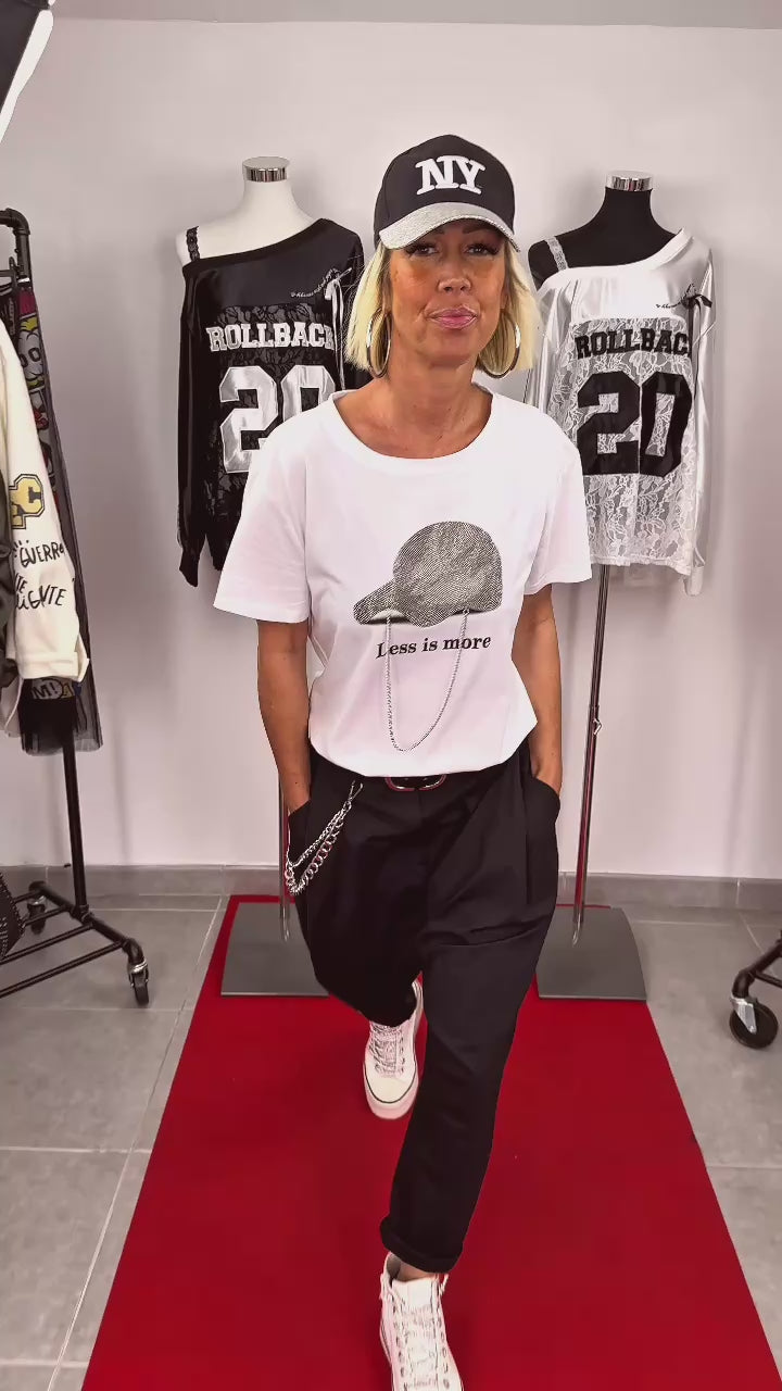 Le tee-shirt KAP a ce petit truc en plus qui fait toute la différence. Simple à première vue, mais ultra stylé dans les détails, il attire immédiatement le regard avec sa casquette en strass qui apporte une touche brillante et tendance. C’est le genre de pièce qui donne du caractère à une tenue sans effort.